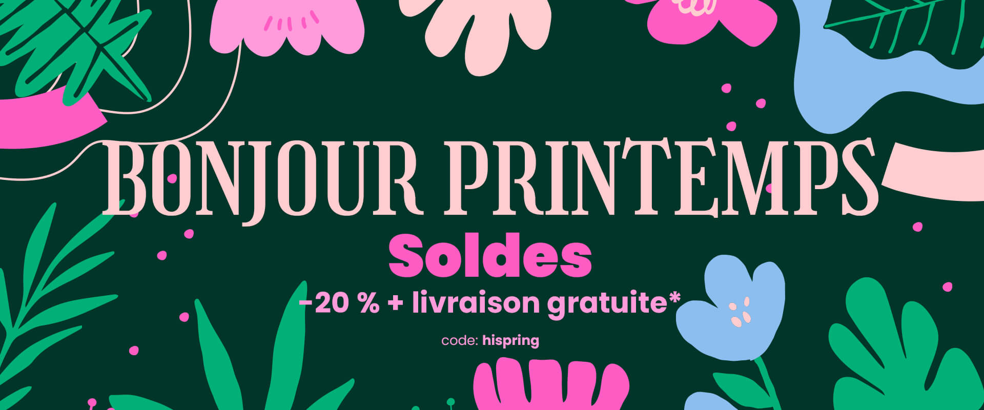 BONJOUR PRINTEMPS! Jusqu’à -20 % sur tout + livraison offerte*! CODE: HISPRING. Plus...